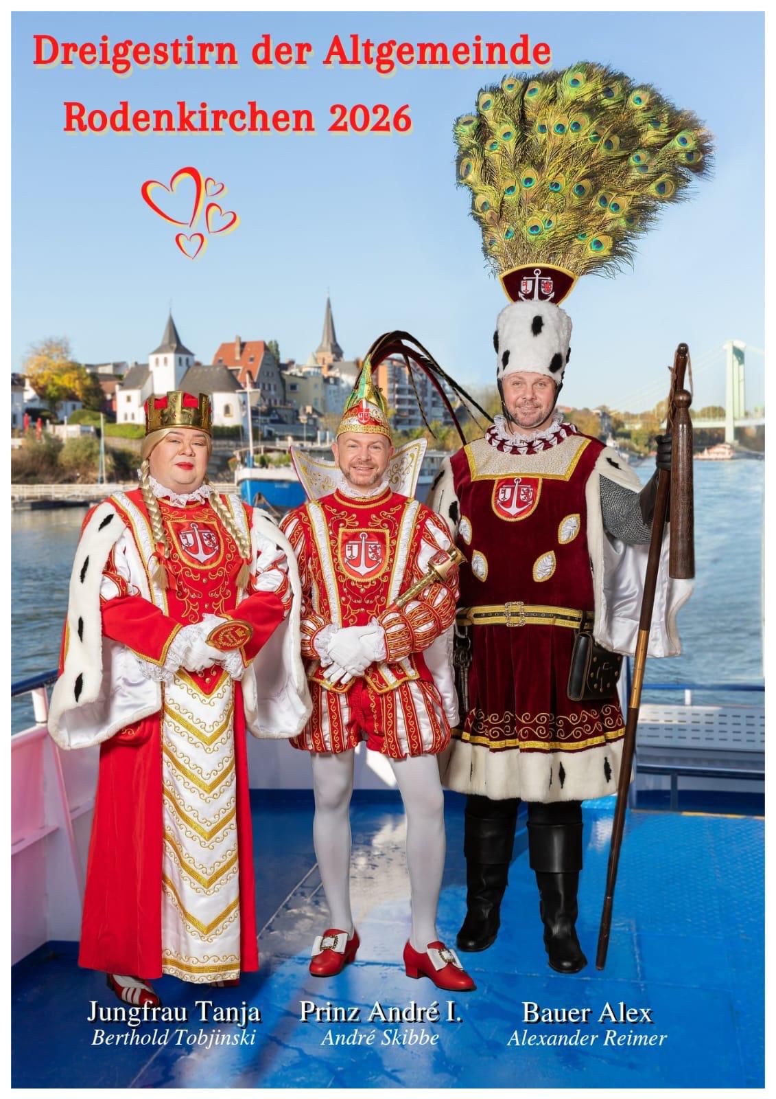 In dieser Session verkörpern Prinz Andre Skibbe, Bauer Alexander Reimer und Jungfrau Berthold Tobjinski die traditionellen Rollen des Dreigestirns, die in dieser Session gestellt werden, von den Knobelbröder von 1967 e.V aus Rodenkirchen. Mit Charme, Witz und kölschem Hätz präsentierten sie ihr Sessionsmotto.